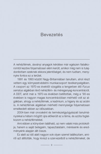A könyvben a nehézfémek veszélyein túl a kivezetés gyakorlati kérdéseire is választ kap az olvasó, végigvesszük a szükséges ásványi anyagokat, azok pótlási lehetőségeit, a kivezetéshez valóban hasznos módokat, gyógynövényeket, szereket.